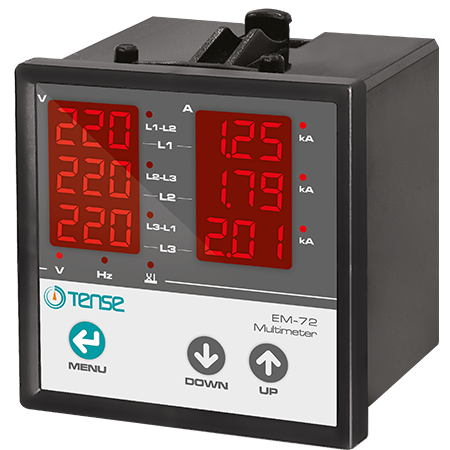 Multimetr - panelový multimetr 3-fázový, multifunkční digitální panelový měřič, ukazatel proudu, napětí a frekvence, výrobce TENSE (Turecko), panelové měřiče