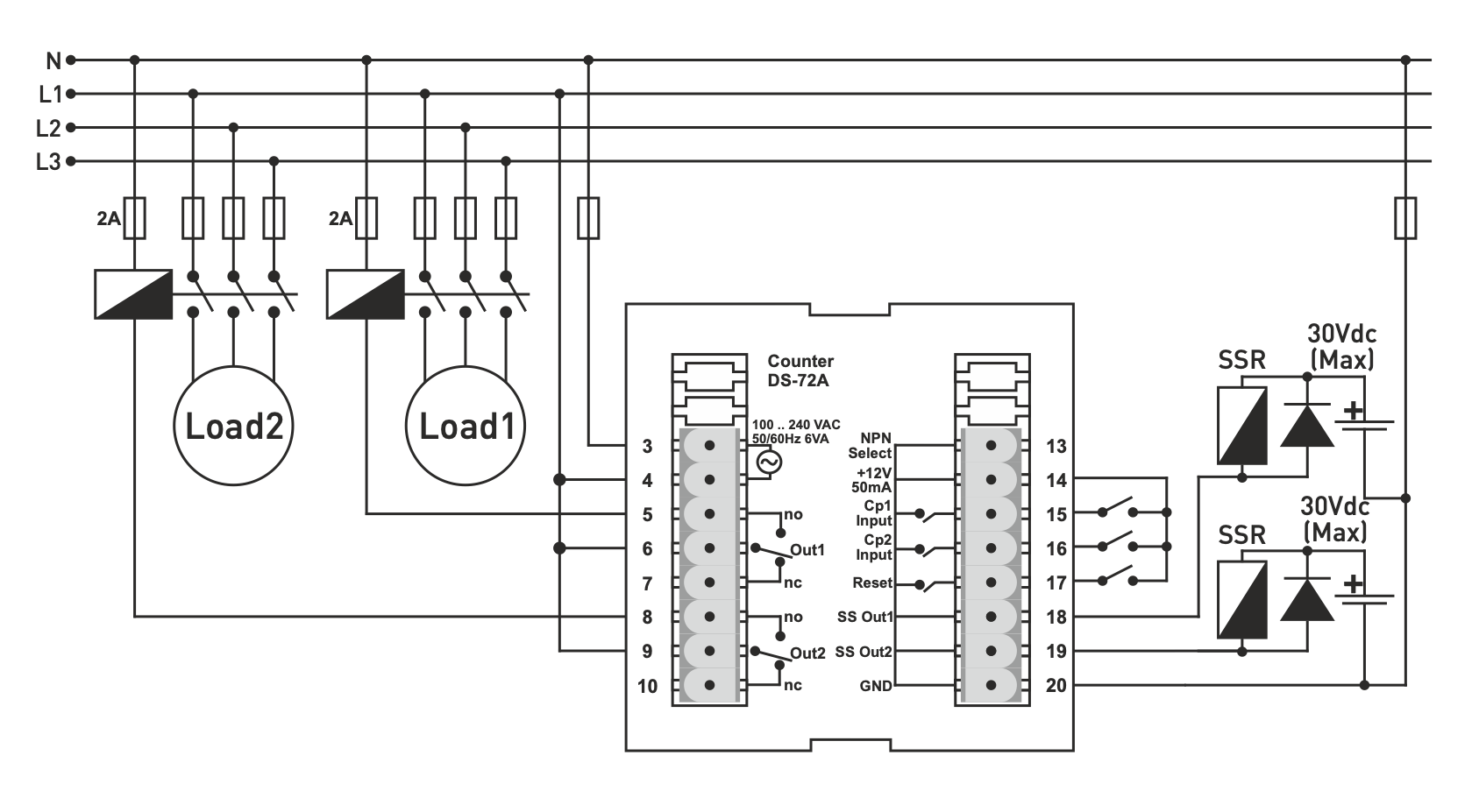 Počítá signály z mechanických spínačů, koncových spínačů, indukčních snímačů přiblížení PNP/NPN a vstupy z inkrementálního enkodéru.