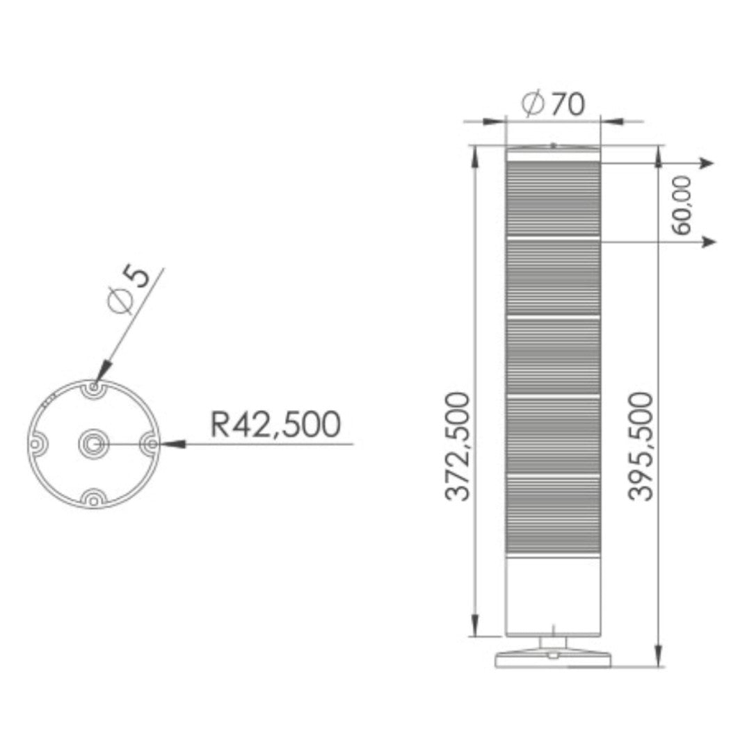 Pětipatrový signalizační sloupek s povrchovou montáží a 10cm trubkou, 12-24, 40-250V AC/DC, SNT-7013 / SNT-7022, výrobce MUCCO (Turecko)