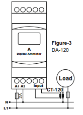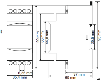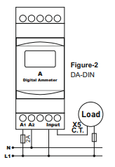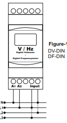 The frequency meter is mounted on a standard 35mm DIN rail