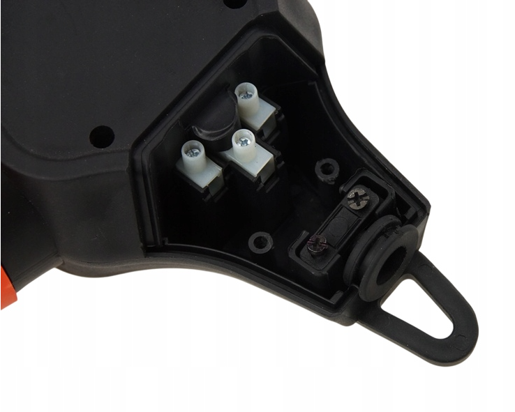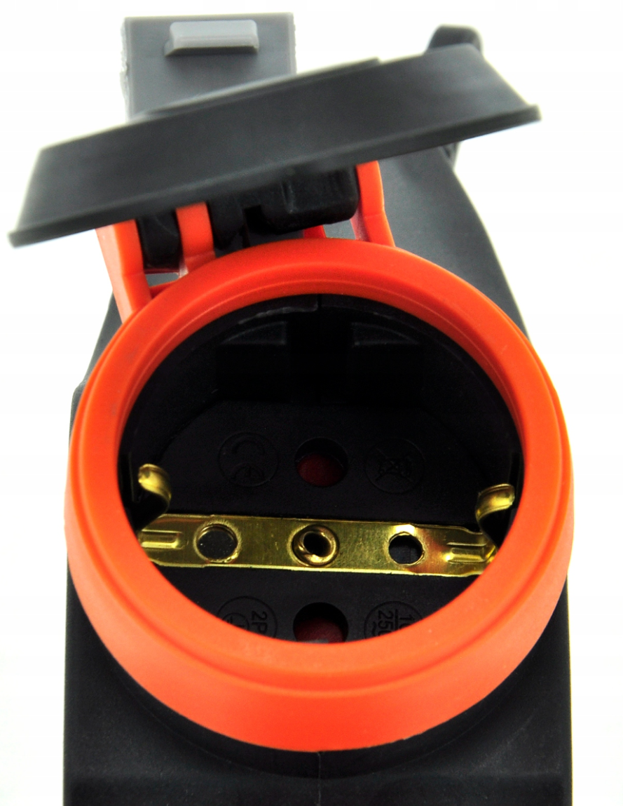 Díky odolnému gumovému pouzdru a konektoru typu E (zásuvka s kolíkem) je zařízení bezpečné pro použití v interiéru i exteriéru.