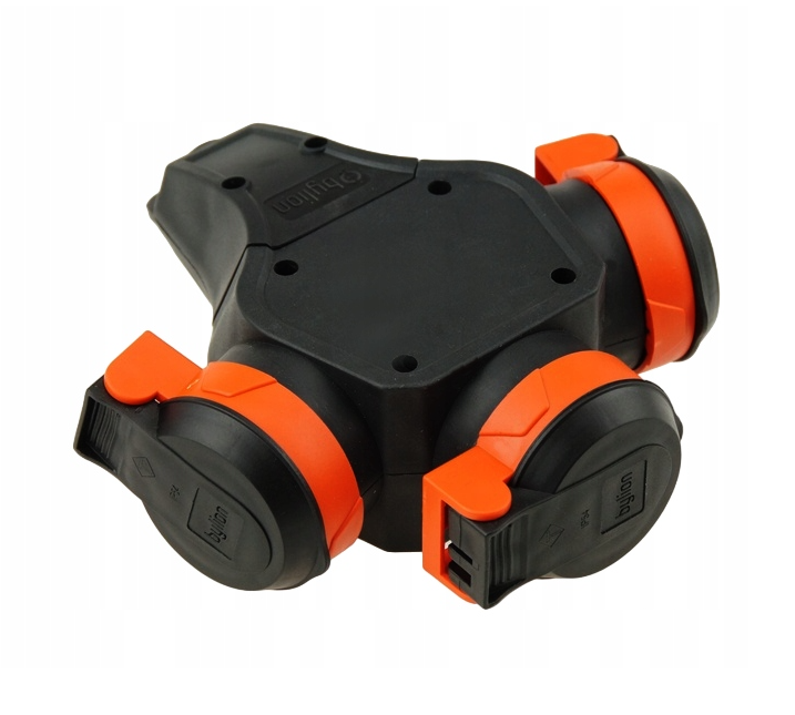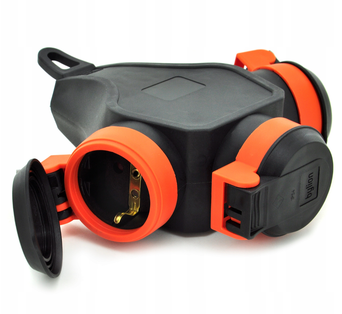 Jednofázová trojitá gumová zástrčka Schuko 16A 2P+Z 230V IP54 (3WHS-F)Tento profesionální elektrický rozvaděč je vynikajícím řešením pro dílnu, stavbu a zahradu.