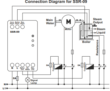 se v blízkosti topného tělesa nenachází voda, relé zablokuje napájení topného