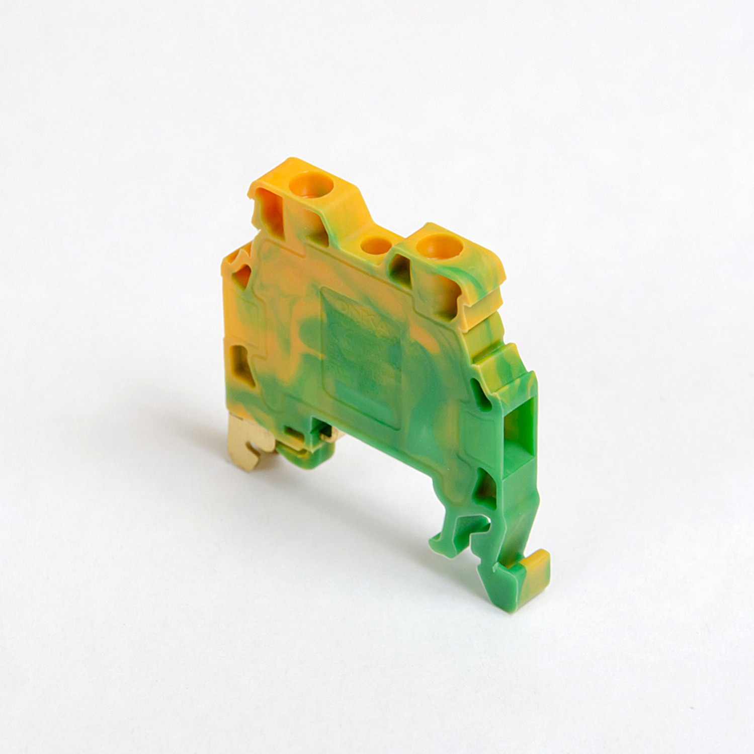 PE závitová přípojnice kolejnicová spojka / Terminál na DIN lištu 2-vodičová zeleno-žlutá, ONKA, vyrobeno v Turecku