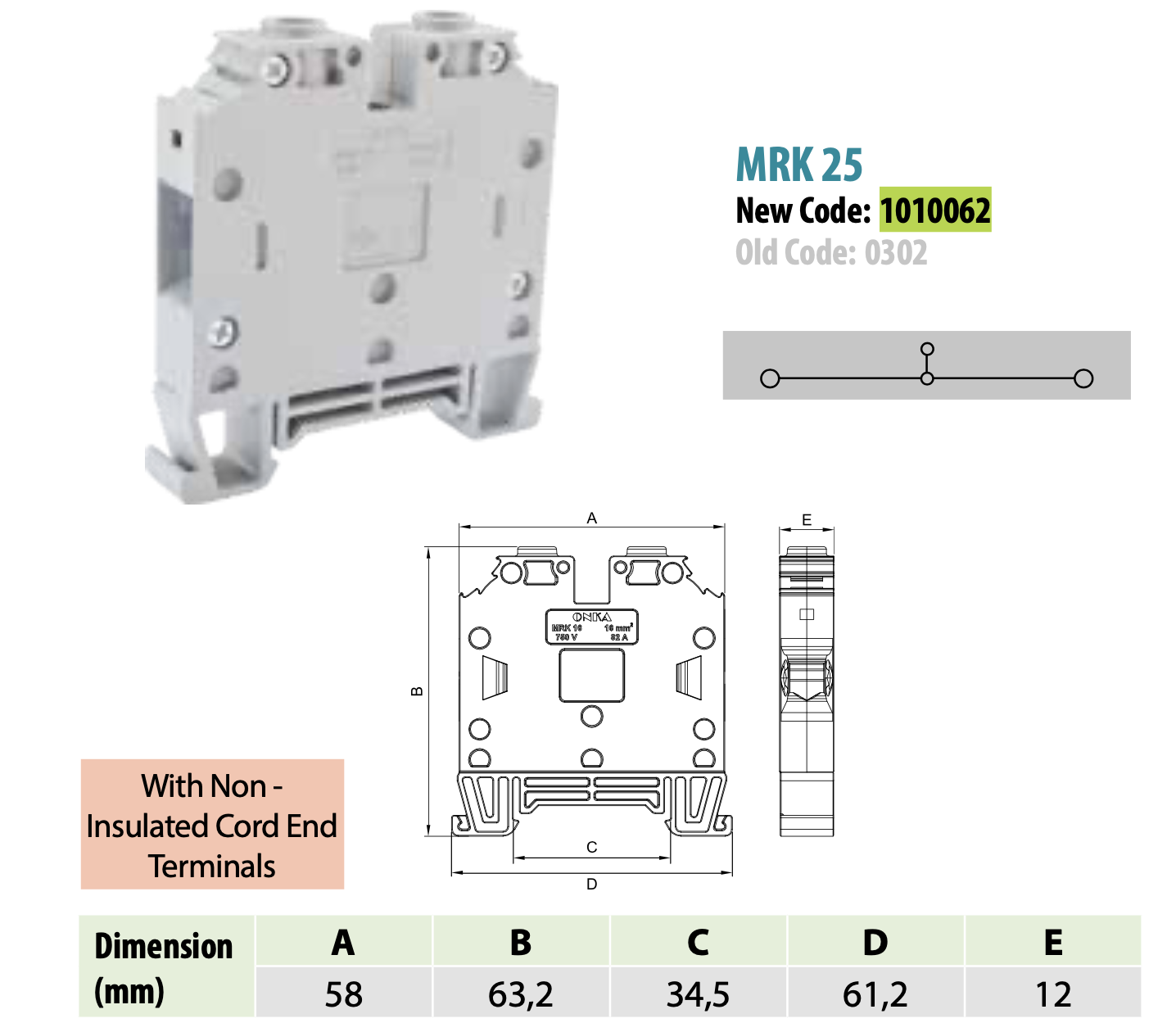 Závitová přípojnice kolejnicová spojka / Terminál na DIN lištu 2-vodičová šedá, ONKA, vyrobeno v Turecku