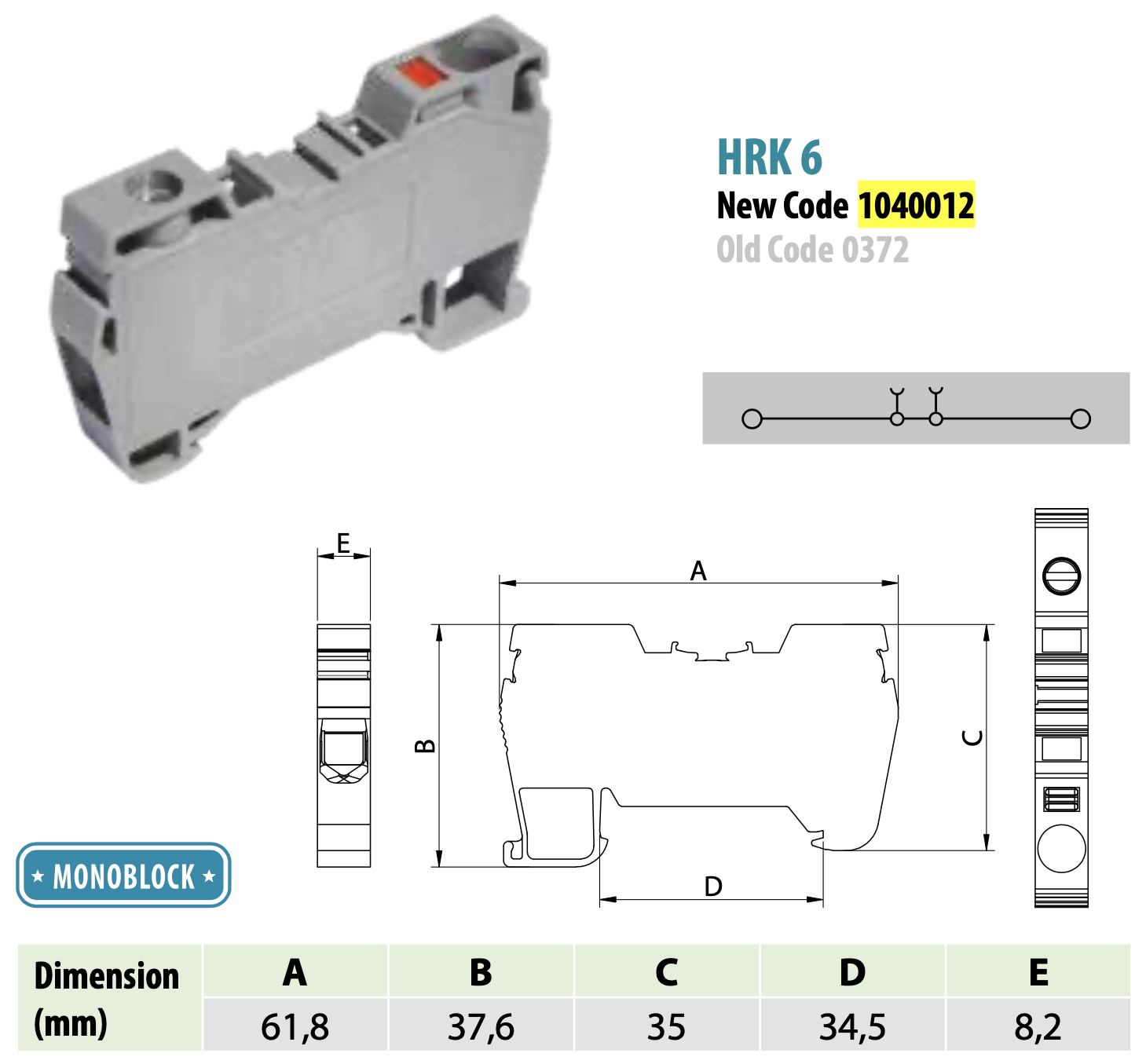 ONKA 6mm2 Hybrid Screw/Spring Rail Connector Terminal Block DIN Rail Terminal Block 2-wire grey, 1040012
