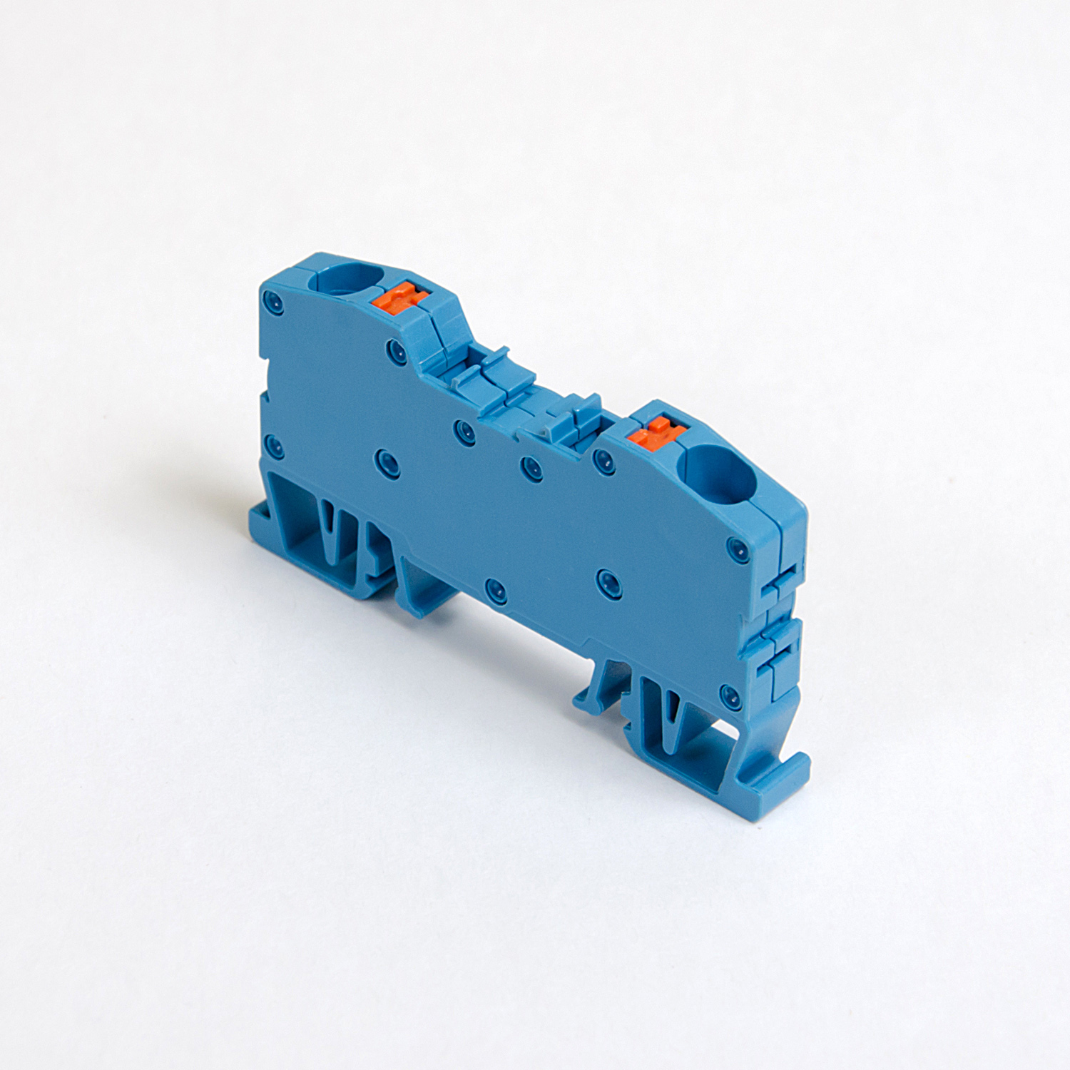 Pružinová přípojnice kolejnicová spojka / Terminál na DIN lištu 2-vodičová, zasouvací kontakt, modrá, ONKA, vyrobeno v Turecku.