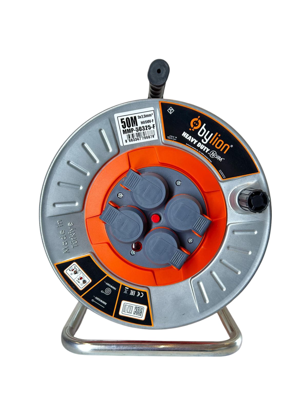 Profesionální prodlužovací cívkaByLionje spolehlivým řešením pro náročné použití v průmyslu, stavebnictví, dílně i domácnosti. Díky robustní kovové konstrukci a vysoké kvalitě zpracování je vhodná pro vnitřní i venkovní použití. Nejlepší volba pro odborníky a kutily zaručuje použití i v těžkých podmínkách.
