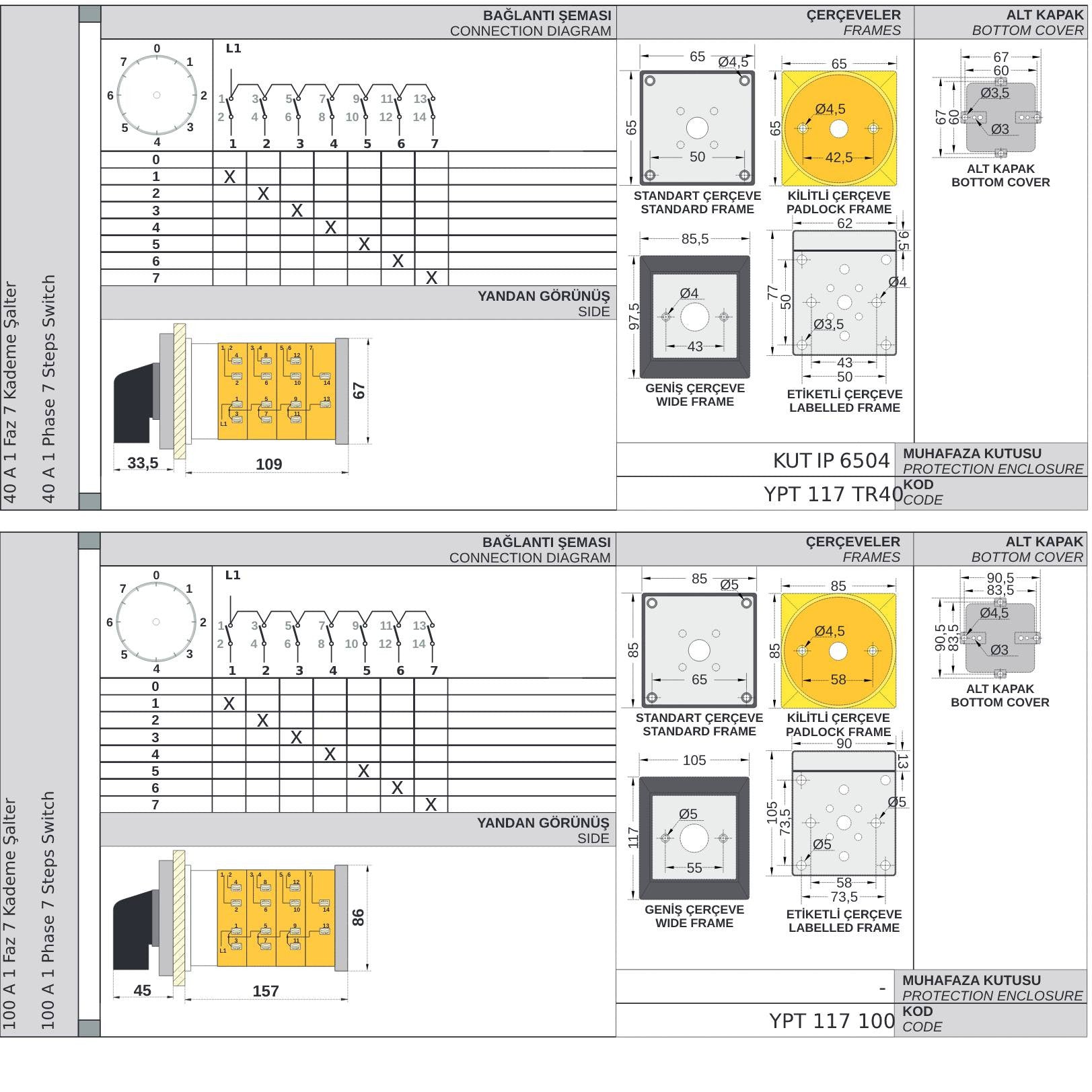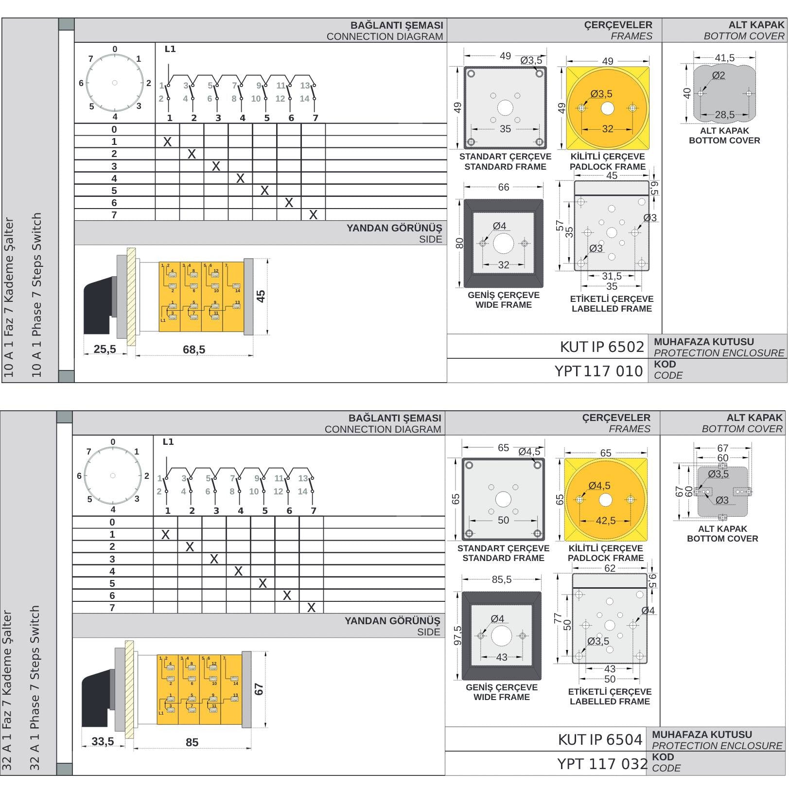 Step (step) switch 0-1-2-3-4-5-6-7, rotary switch, 1 pole, 10-160A, YPT117 manufacturer OPAŞ (Turkey)