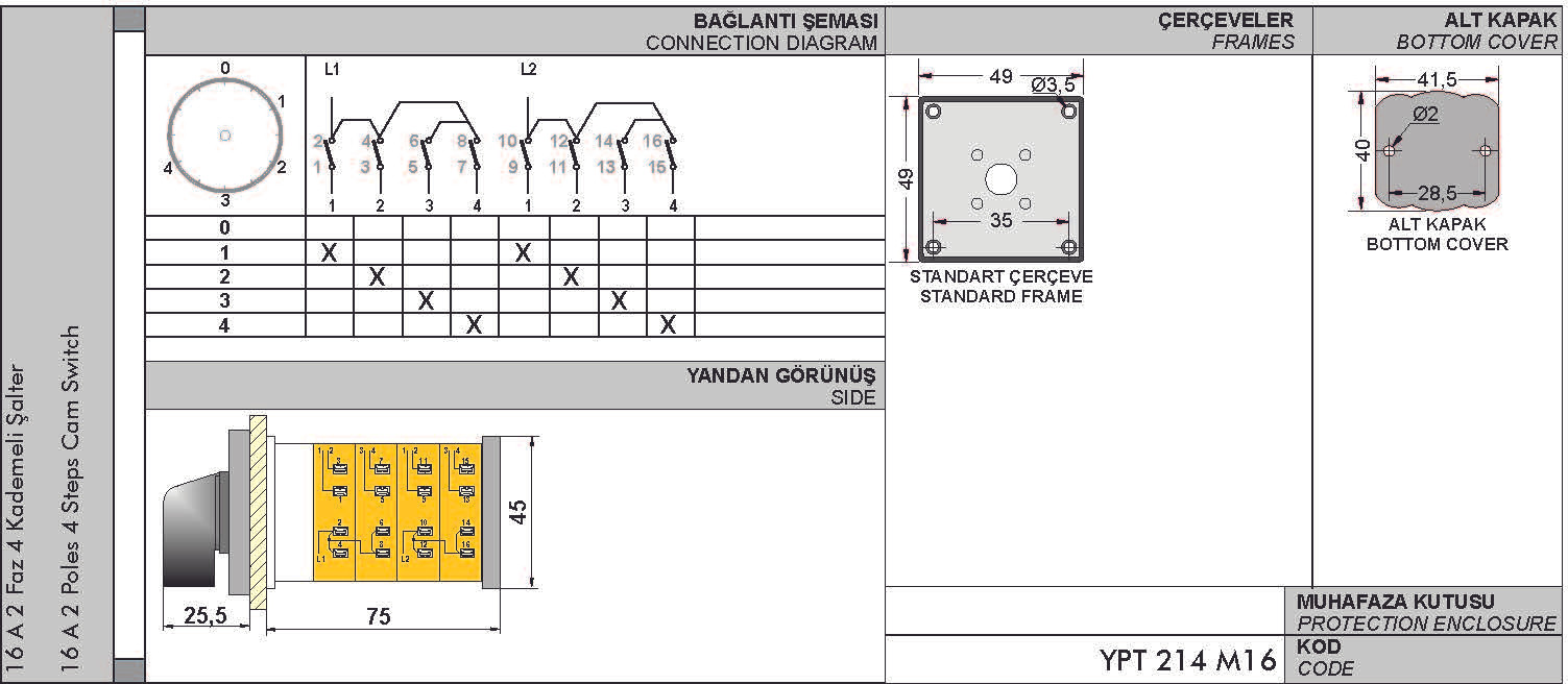 Step (step) switch 0-1-2-3-4, rotary switch, 1-2 poles, 10-160A, YPT114, manufacturer OPAŞ (Turkey)