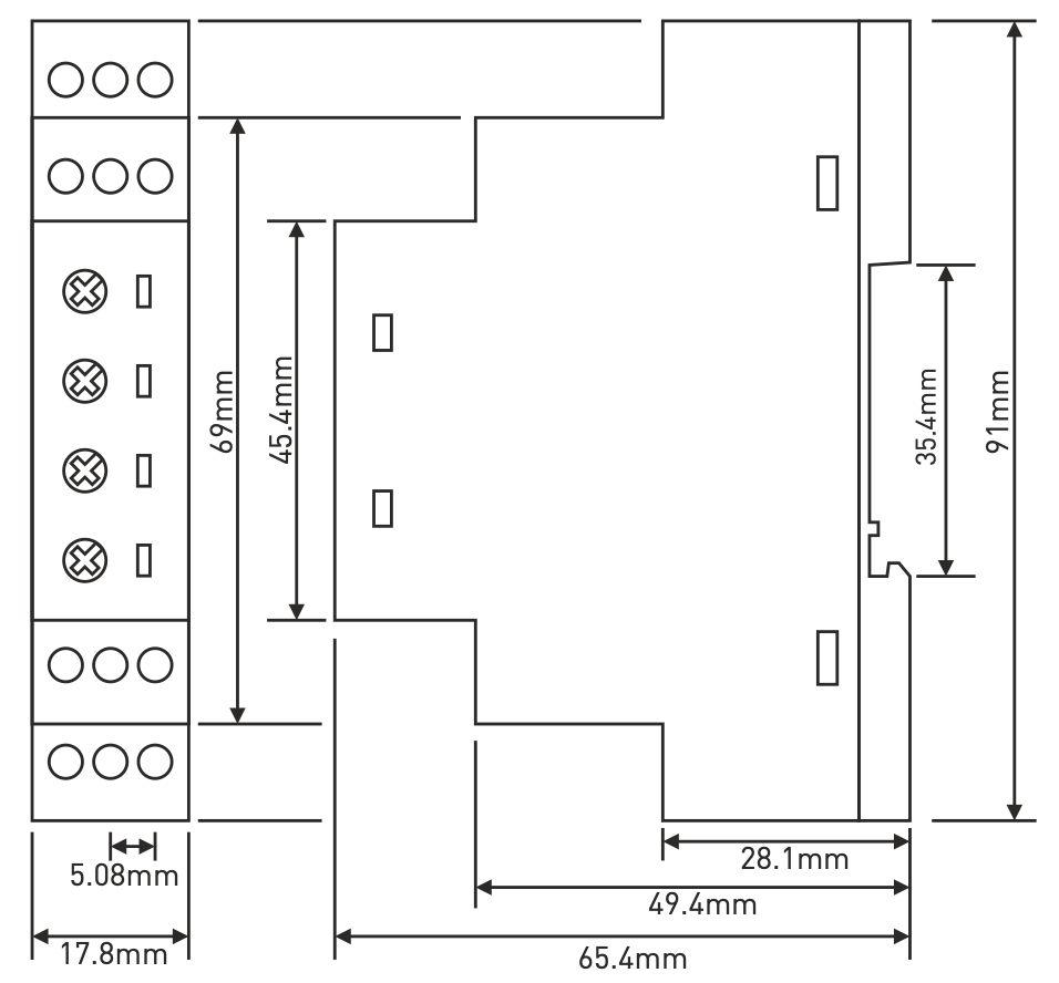 Časové relé se montuje na standardní 35mm DIN lištu