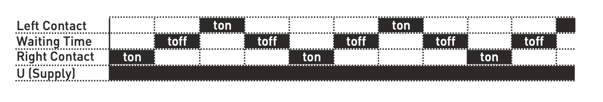 Časové inverzní reverzní cyklické relé - "vlevo - vpravo", "nahoru - dolů", "vpřed - vzad"
