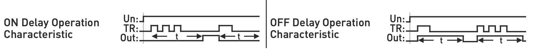 je digitální časové relé spouštěné signálem na vstup TR se zpožděním zapnutí nebo